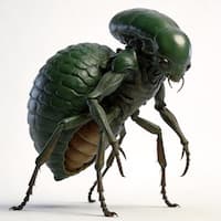 "有机骨骼与肌腱、深色异星甲壳、发光的毒绿色脉络,H.R. Giger 风格"